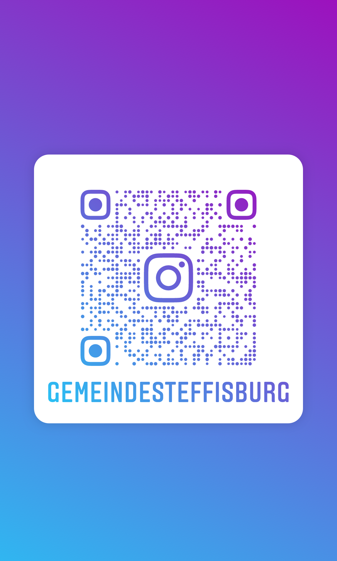 Ab 3. März 2021 baut die Gemeinde Steffisburg ihr Angebot in Bezug auf die Öffentlichkeits-arbeit mit dem Betrieb von eigenen Social Media Kanälen auf Facebook und Instagram aus. Nutzen Sie dieses Angebot und bleiben Sie bezüglich Gemeinde-News auf dem Laufenden, in dem Sie uns auf den Sozialen Medien unter "Gemeinde Steffisburg" (Facebook) bzw. "gemeindesteffisburg" (Instagram) folgen. Auf Instragam können Sie uns auch mittels Verwendung des QR-Code folgen.