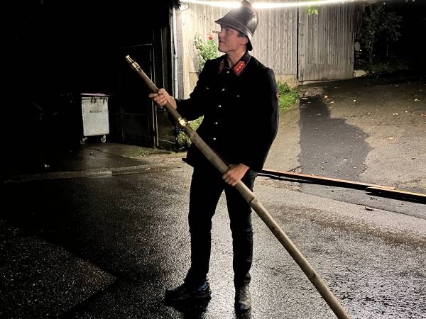 Die Feuerwehr Schwendibach hat sich im Jahr 2014 der Feuerwehr Steffisburg regio angeschlossen. Die alte Feuerwehrspritze übernahm jedoch das 1. August-Team Schwendibach. Diese Feuerwehrspritze wurde nun durch das 1. August-Team, das unteranderem durch ehemalige und aktive Feuerwehrmänner besteht, ehrenamtlich restauriert und zu neuem Leben erweckt. Zwei Löschdemos an diesem Abend haben eindrücklich bewiesen, dass auch eine 100-jährige Feuerwehrspritze noch tadellos funktioniert. Übrigens: die Feuerwehrspritze wird nicht durch einen Motor betrieben - da ist noch bis heute die Muskelkraft starker Feuerwehrler gefragt.