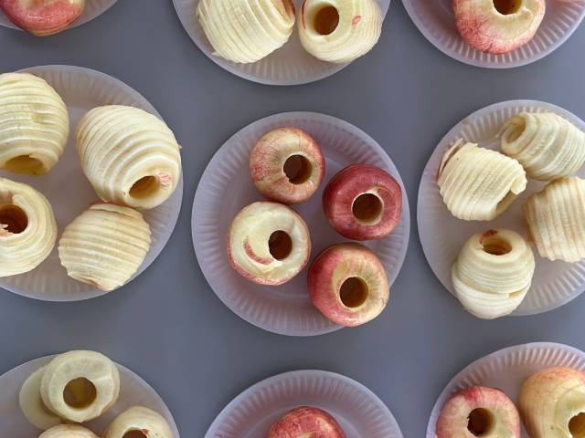 Nebst dem "normalen" Apfel gibt es Apfelschnitzchen, Apfelschlangen und halbe Äpfel.