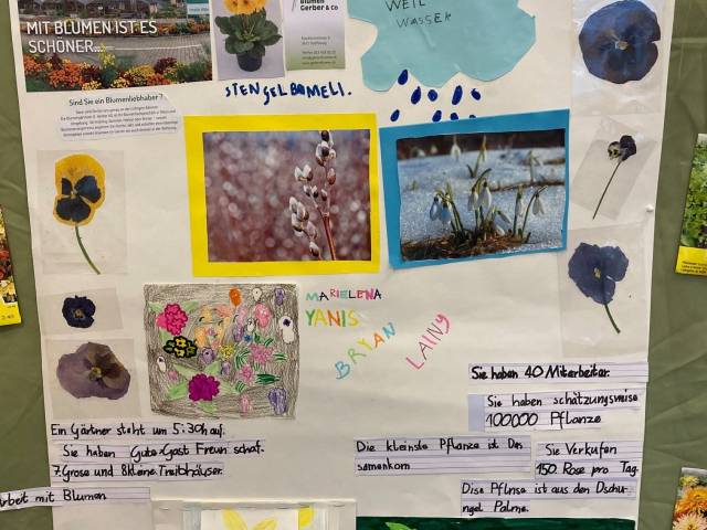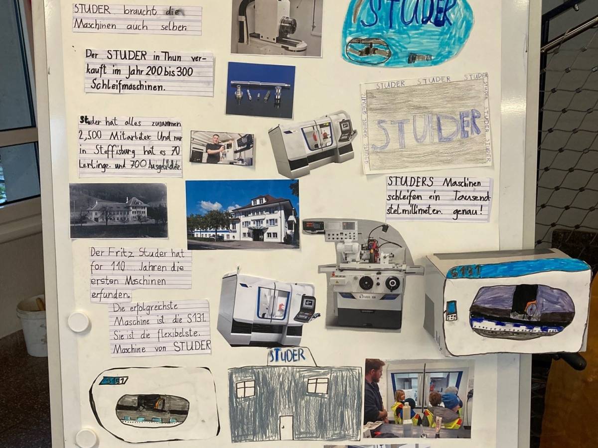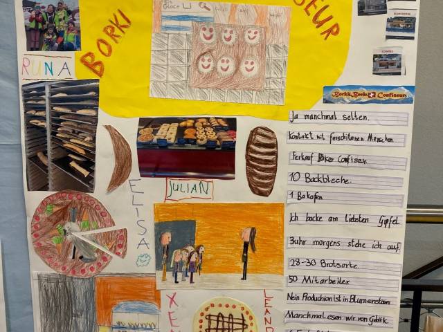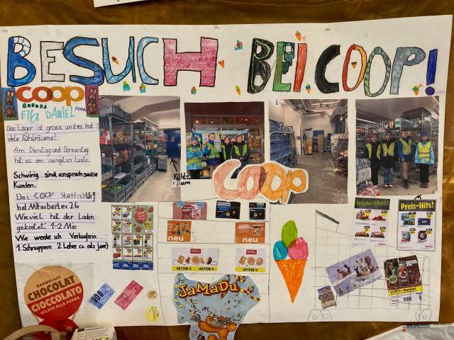 Als Abschluss besuchten die Kinder in Gruppen verschiedene Berufe und Firmen in der Umgebung Glockental. Anschliessend gestaltete jede Gruppe mit grossem Einsatz und Ideenreichtum ein Plakat. Es wurde auch gebastelt und nachgebaut, was die Kinder in den verschiedenen Berufswelten entdeckt haben.