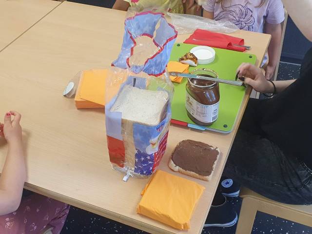 Modul 1: Die Kinder erlebten, wie ein Algorithmus funktioniert. In einem Spiel liefen sie durch ein Sortiernetzwerk und sortierten sich entsprechend ihrer Körpergrösse. In einer anderen Übung gaben die Kinder dem Erwachsenen, der sich wie ein Roboter verhielt, Anweisungen, wie man ein Nutella Brot schmiert.
