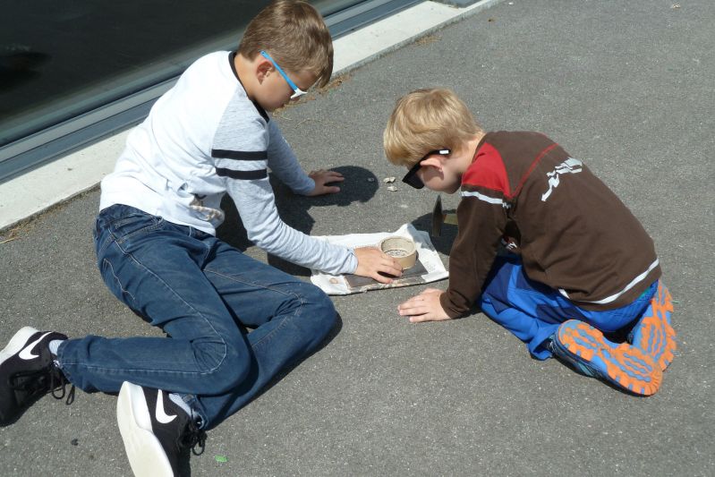 Ein weiteres Projekt war das Kreieren von Mandalas, die aus zu Staub gehämmerten, farbigen Steinen entstanden. Nur mit gesammelten Kräften konnte das Bild entstehen, welches nun den Hauseigang schmückt und jeden Tag erneut daran erinnert, dass man zusammen alles schaffen kann.