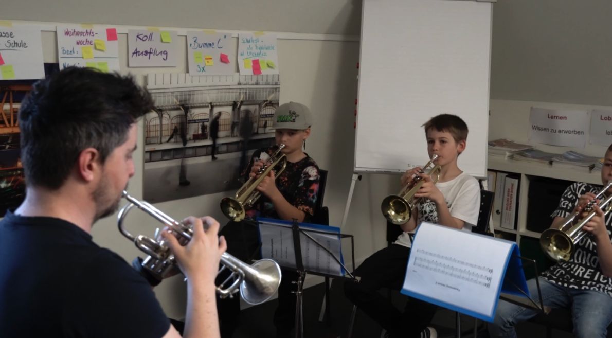 Dies ermöglichte den Schülerinnen und Schülern, ein Blasinstrument spielen zu lernen und eröffnete einen praxisbezogenen Zugang zu Musik und Kultur. Zusätzlich konnten die Kinder ihre Kompetenzen im Bereich des Zusammenspiels, der Interaktion (aufeinander hören) und der Konzentrationsfähigkeit vertiefen.