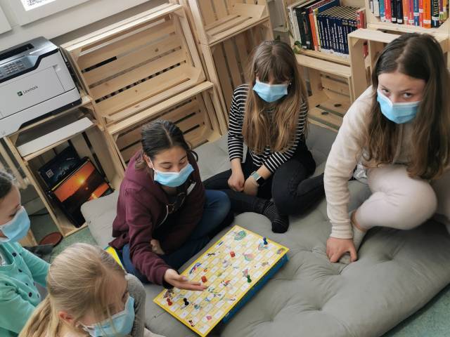 Das Thema «Spielen» wurde ergänzt - nebst vielen Gesellschaftsspielen durften die Kinder alle ein «Mini-Projekt» wählen. Dabei entschieden sie sich für ein Thema, bei welchem sie im Selbststudium etwas Neues lernen konnten: eine PowerPoint erstellen, einen eigenen Tanz einstudieren, ein T-Shirt bemalen, Haarbänder nähen, Unihockey-Tricks lernen, ein PC-Spiel programmieren mit Scratch, malen mit Tusche, einen Film schneiden, usw.