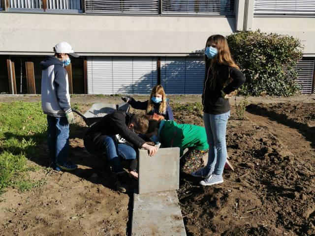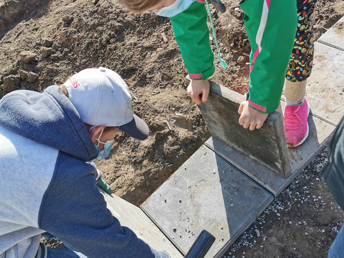 - Zwischen den Beetli durften die Kinder selbst Platten verlegen.
