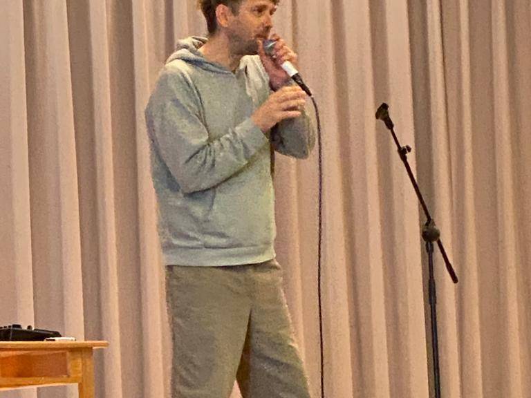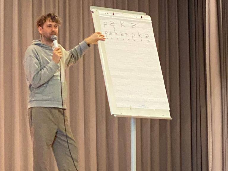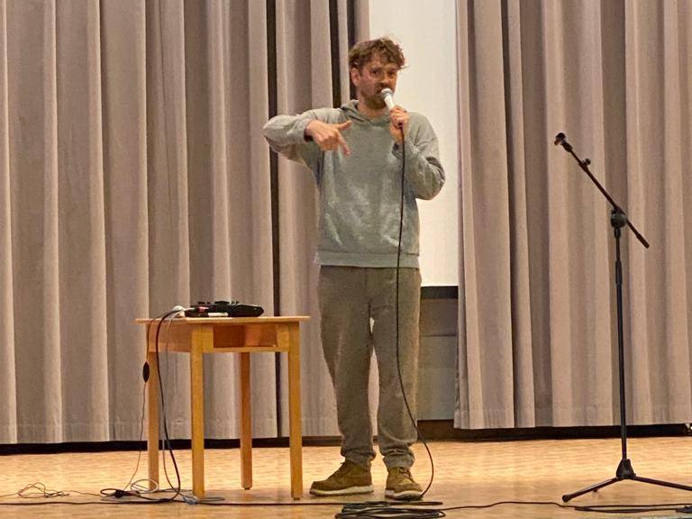 Chocolococolo zeigte den Schülerinnen und Schülern, wie man einen Rap schreibt und diesen zum Song macht. Zudem wurden sie in die Kunst des Beatboxens (Mundperkussion) eingeführt