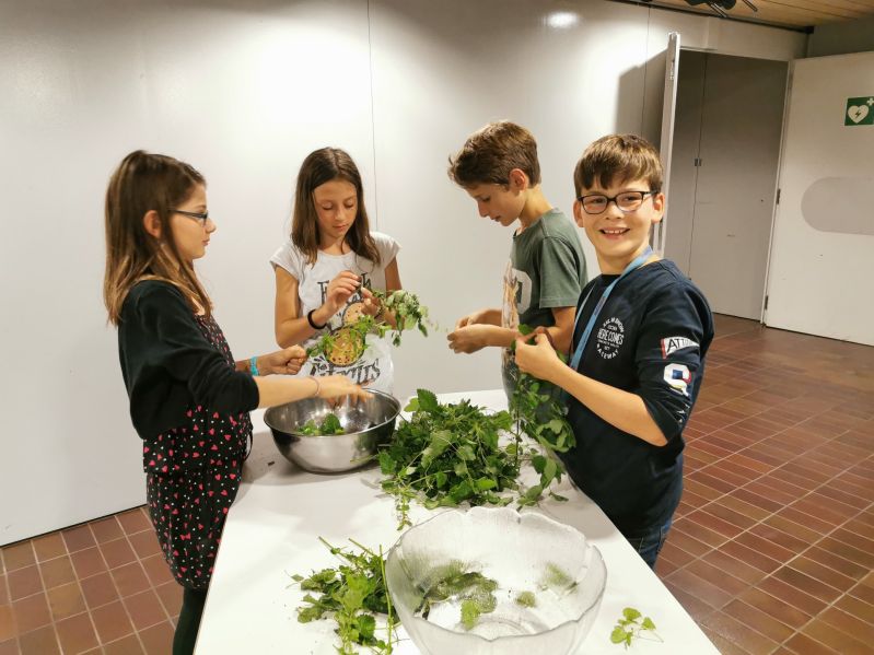 Am 20./21.August verbrachten beide Klassen jeweils 2 bis 3 Stunden in der Küche. Insgesamt wurden 11 kg Zucchetti eingemacht, 2 kg Gurken, 10 l Zitronenmelissensirup und 6 Zucchetticake - und wir sind noch nicht fertig!