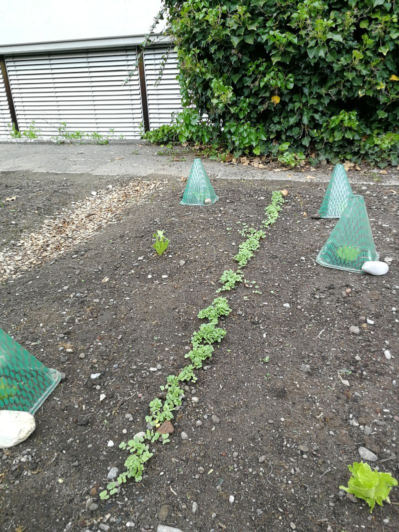 und weiteres Gemüse wurde direkt in die Erde gesät. Die Kinder massen Abstände