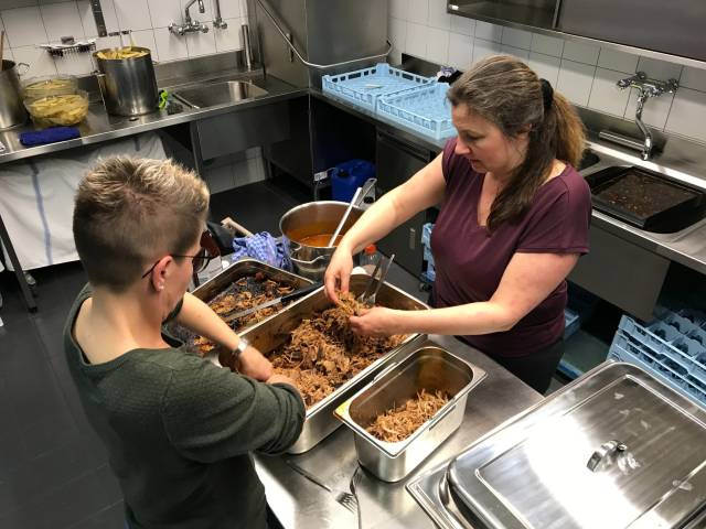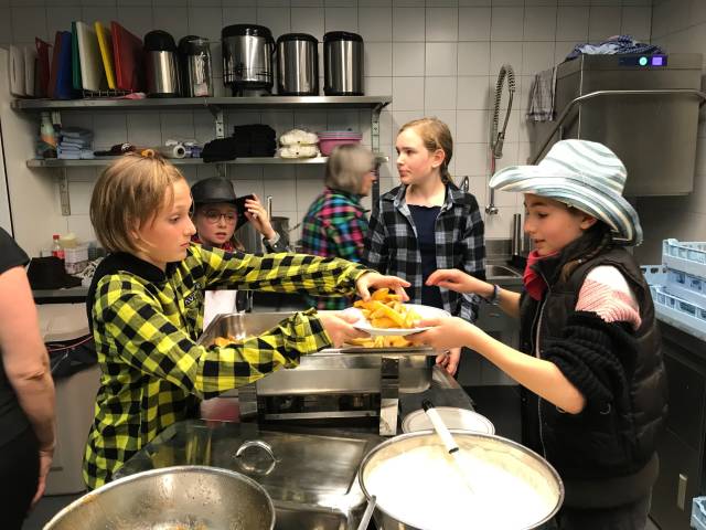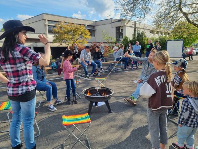 Alle Kinder, eine Mehrheit passend zum Thema bekleidet, hatten einen Arbeitseinsatz von 45 Minuten, betreuten Spiele draussen oder halfen in der Küche, wo es Pulled Pork Burger, Country Cuts, Maiskolben, Chicken-Nuggets und ein grosses Dessertbuffet gab.