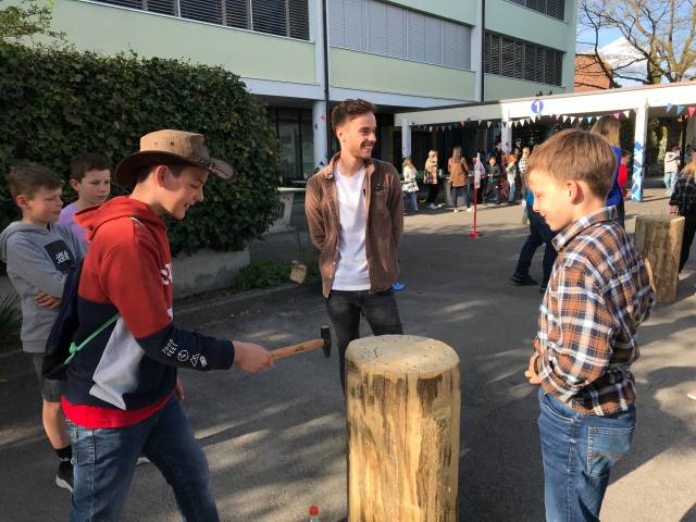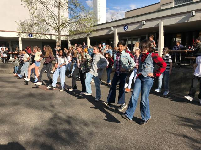 In kurzen Abständen fanden Linedance-Vorführungen im Bärengraben statt. Zu Beginn tanzte nur eine kleine Gruppe, doch mit jeder neuen Vorführung schlossen sich immer mehr Kinder, Lehrpersonen, einige mutige Eltern und sogar ehemalige Schülerinnen, die die Tänze aus ihren Mittelstufenjahren kannten, den Tänzerinnen und Tänzer an.
